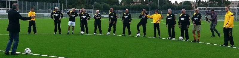 De spelers(ters) kunnen alvast starten met een lichte looppas - ronddraaien v.d. gewrichten en/of zonnegroet of anders...